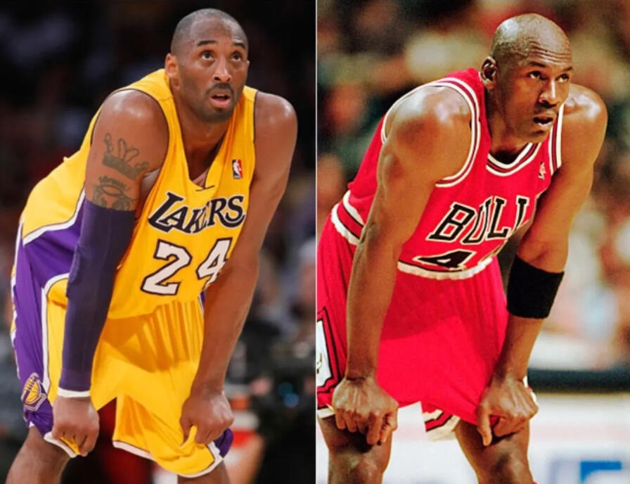 By placing your hands over your head, your front lower ribs come up and outward (rib flare), just like the skeleton on the right of the picture. Due to the position of the ribcage and pelvis in this position, you can see how the diaphragms are not stacked on top of one another, leading to inefficient breathing mechanics and movement of air into the lungs. For a person out of breath after exerting himself or herself, this is not optimal for recovery.Conversely, by hinging at the hips and placing your hands on your knees like Kobe and MJ, the diaphragms are stacked on top of one another due to the ribcage and pelvis position like the skeleton on the left of the picture. This leads to a more effective breathing pattern, more oxygen being taken in, and shorter recovery time for the athlete.